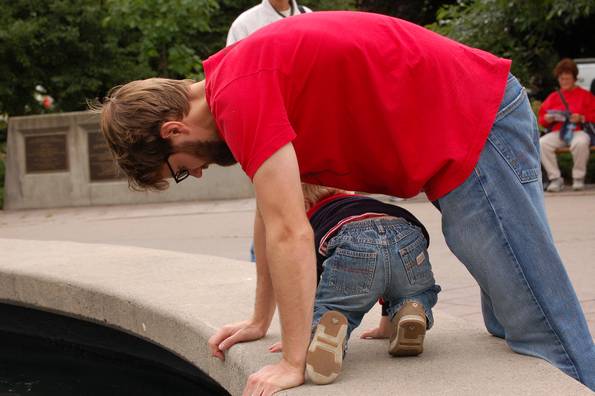 Apparently dads make good bridges.