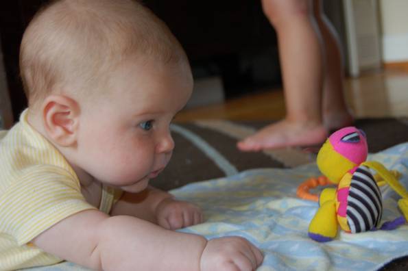 Stuffed cat vs. baby. There can be only one!