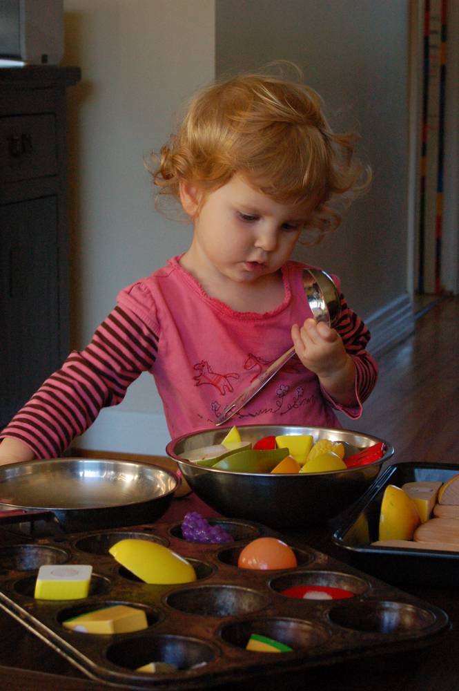Wow, it took me a whole minute to realize that it's play food in the trays and bowls.