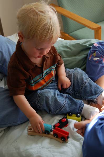 Dia "bought" Raphie a train set to soften the blow of no longer having both his parent's undivided attention.