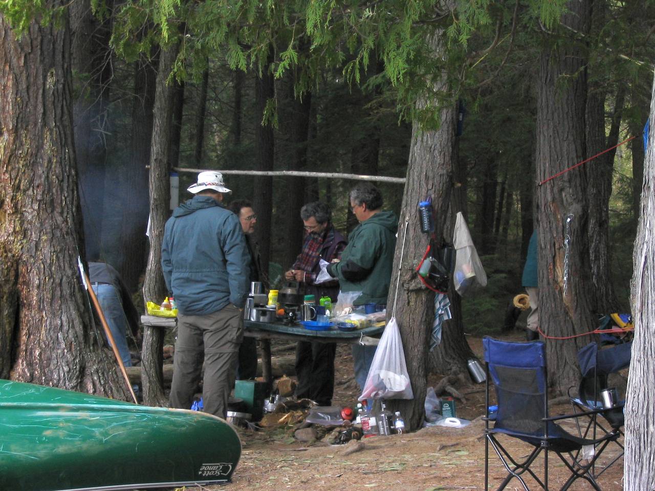 Somebody left an old plastic patio table, which was great for cooking. Of course, that begs the question as to why someone would carry an old plastic patio table 7 km...