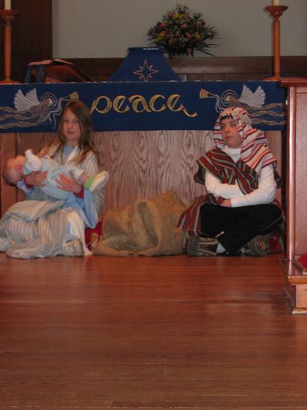 Semi-comatose Raphie playing baby Jesus at my Dad's church pagent. I swear I heard one of the 8 year old wisemen lean over and ask his friend if "Jesus was dead".