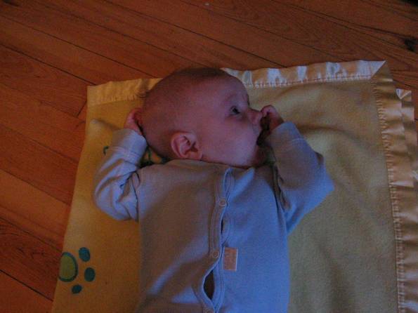 That's the noise he makes when he gets his hand, or toys, or our hair, or the cat's tail in his mouth.