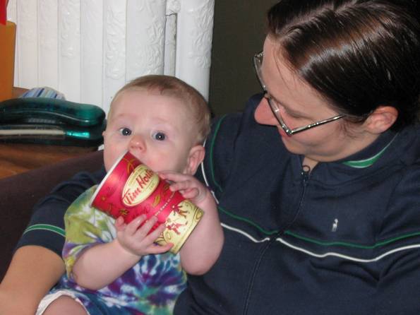 Here's proof he's Canadian through and through. It was his favorite toy for the entire day.