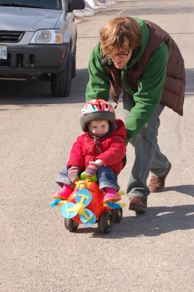 I'll be perfectly happy as long as you continue to push me up and down the street on my airplane daddy.