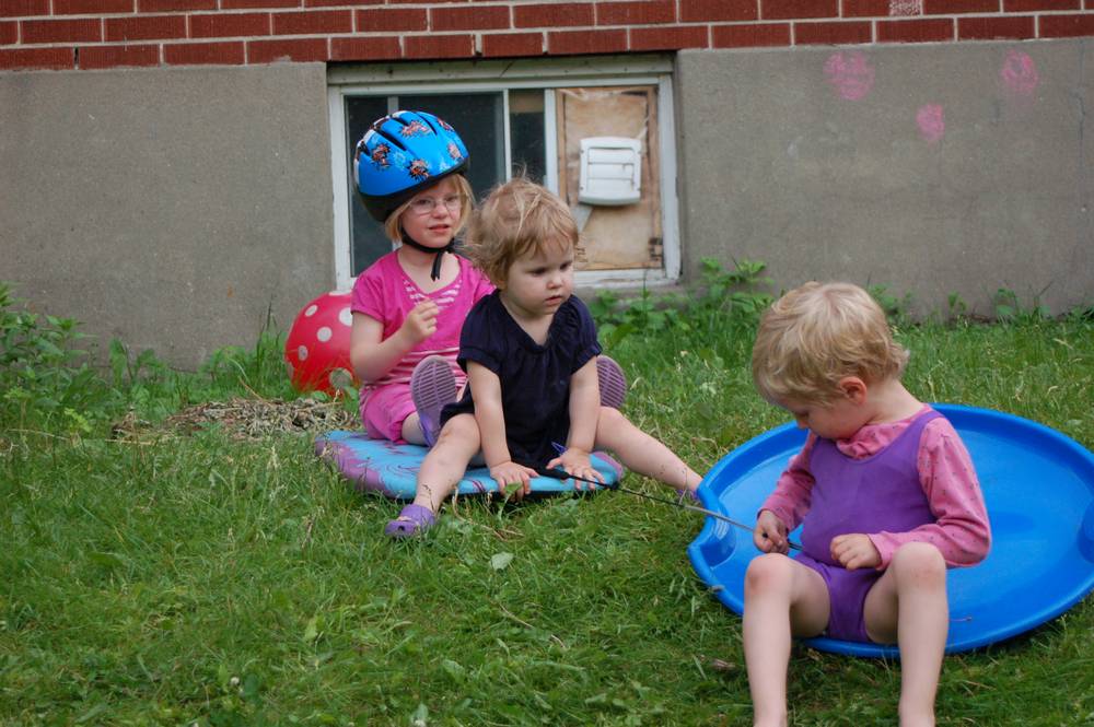 How about I tie you guys to me and then I'll slide down and it'll pull you along k?
