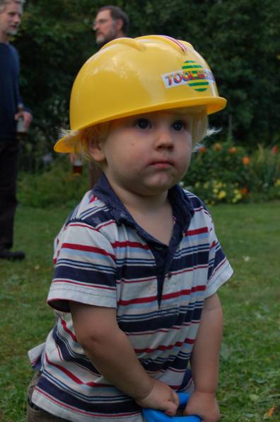 Even at his own party, the Tool Boss is busy mowing the lawn.