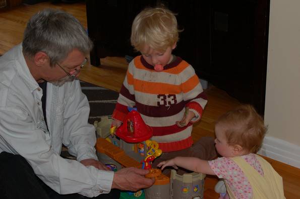 Playing sand castle with Poppa (and eating a pig).