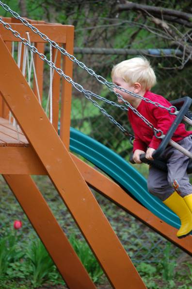 I lurv the lines in this photo, and it helps that the swing will keep him entertained indefinitely.