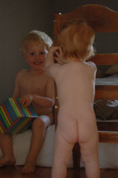 My kids love being naked - take their clothes off and they go wild...it doesn't bode well for future Pat.