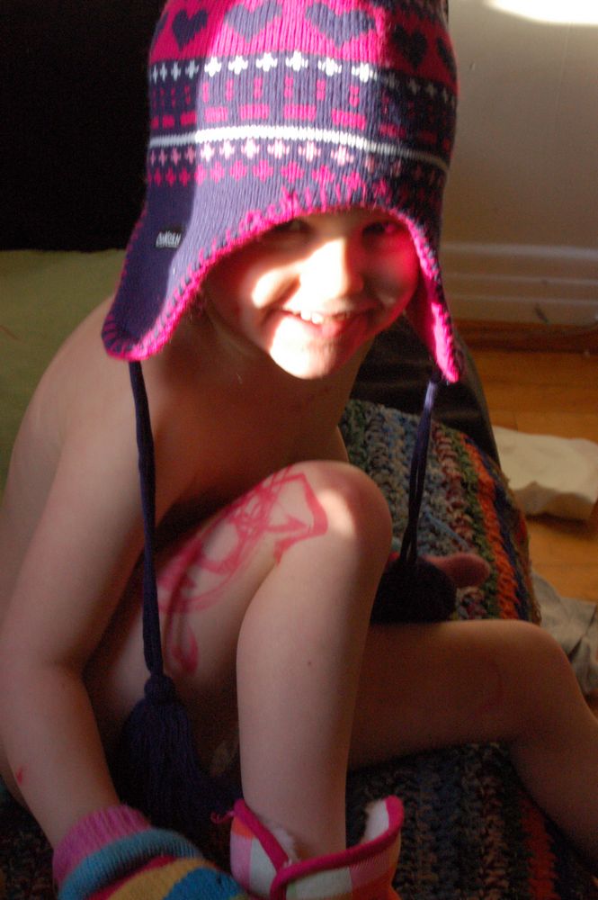 Just imagine...a few more years and that will be a tattoo on her leg.