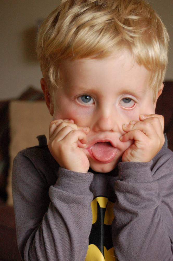 Gross face, batman shirt and a sparkly purple shirt. Indeed I am :)