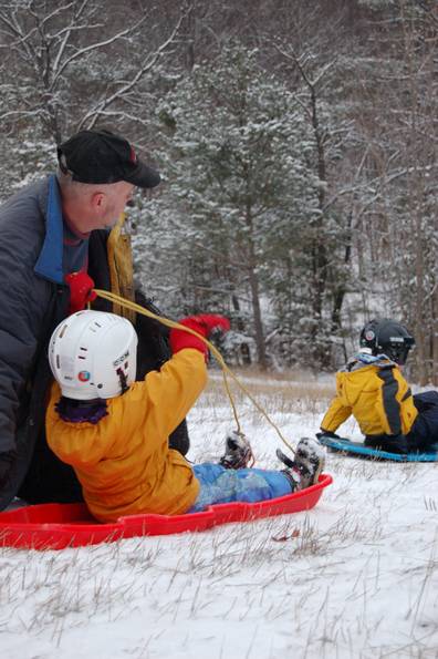 My Uncle John send the kids to their doom....or fun down hill toboggan ride. You never know, there could be crocodiles just out of shot.