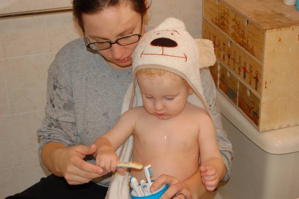 Yes... the bear towel? The toothbrushes? You guys are wierd. I think you baby would be MUCH better off being raised by his Poppa. He would have bones to play with.
