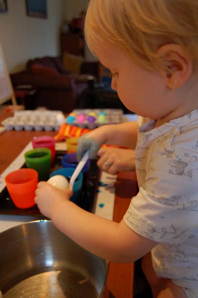 Apparently when you mix all the egg dye colours together, you get green hands.