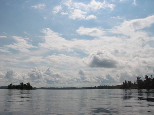 Big river. The funny thing about this trip is that it fell on the same weekend that a cigarette boat race was taking place on the St. Lawrence. You paddle pretty damn fast when 2100 horsepower of speed boat is coming at you.