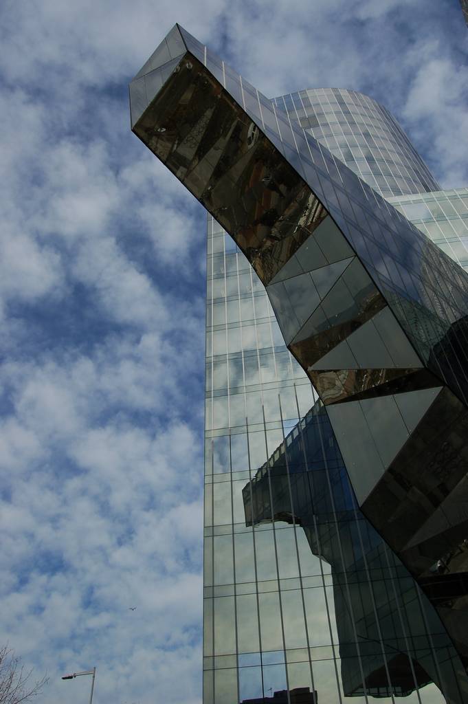 An office tower near the ocean. The architectural theme of Barcelona seems to have been "different for the sake of being different".
