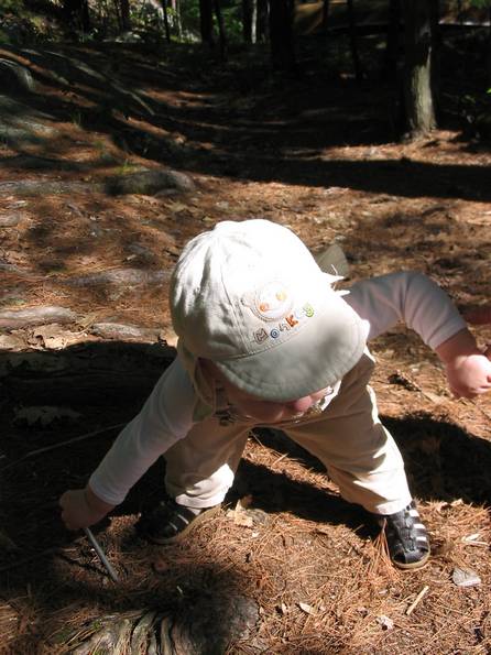 Someone had left a steel tent peg, and you-know-who made it his mission to free it.