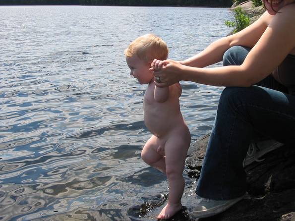 He does the same thing in swimming leassons - as soon as his feet touch the water he tries to run in.