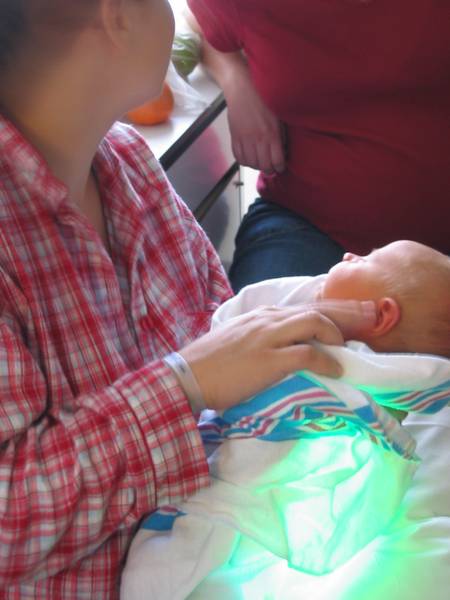 Remember those toys from the 80's that glowed when you hugged them? Well now we have the real life version. In case you're curious, it's called a Bili-Blanket and it's used to help treat jaundice. It's sort of like a mini tanning bed.