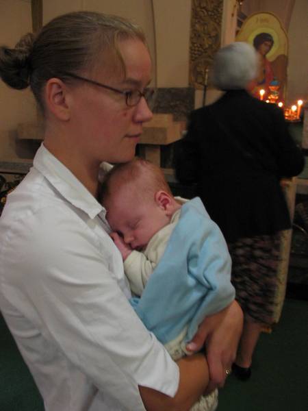Aunt Maymay has the mad skills (yo). He was fussing on his first trip to church and she got him to sleep with her secret baby weapon: the Meow Mix song.