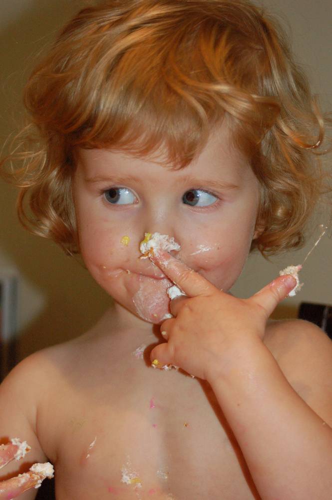 Don't ask me why, she just happens to like food on her nose.