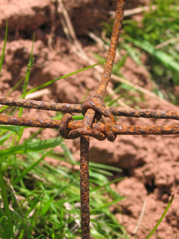 A rusty wire fence on a farm in PEI.