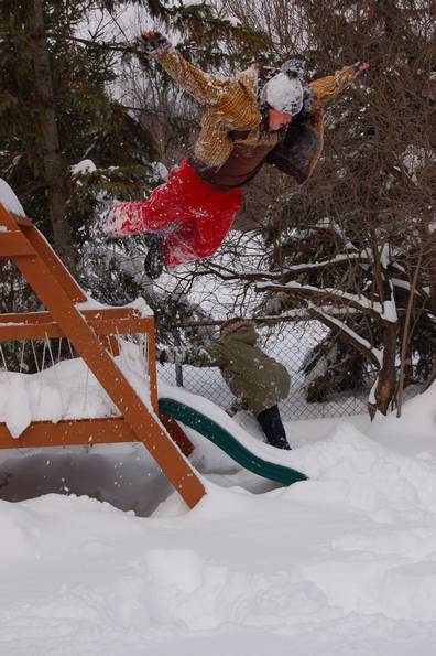 Gabe's friend Logan showing us all that teenagers don't mind freezing themselves for everyone's amusement.