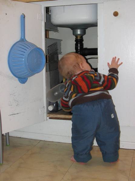 Raphie's convinced that there is something good hiding in the kitchen cupboards.