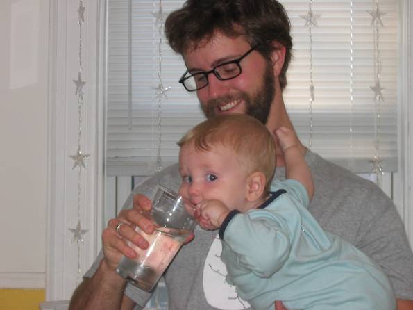 He loves drinking from a glass, and pinching necks with his razor sharp baby fingernails.