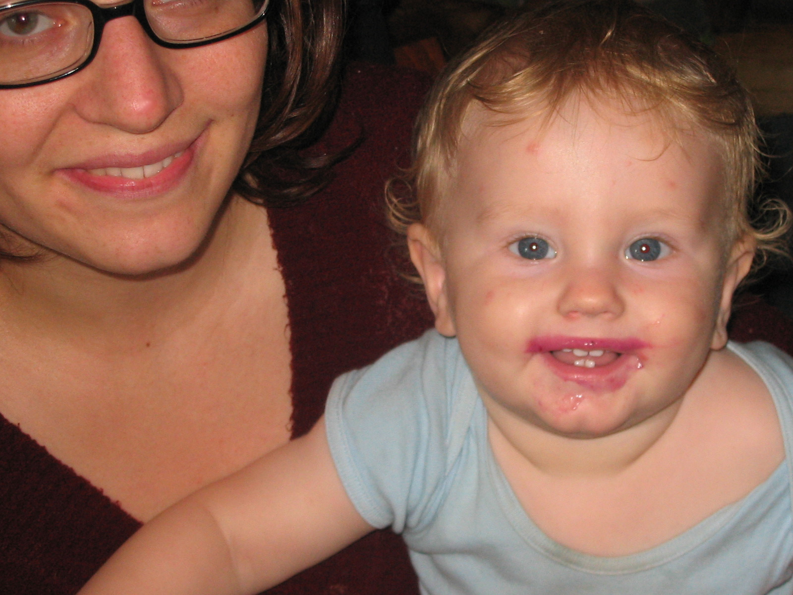Raphie has discovered that he really likes mom's raspberry smoothies.