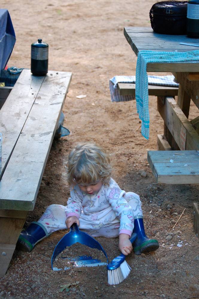 She's cleaning the campsite for us.