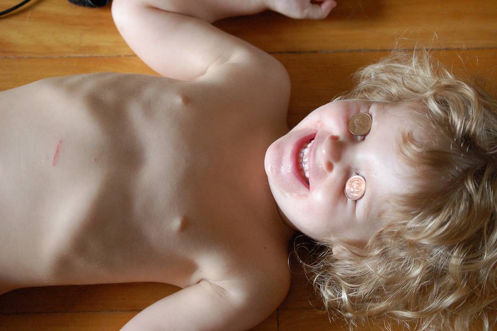 Lets see how long you can lie quietly with pennies on your eye children.