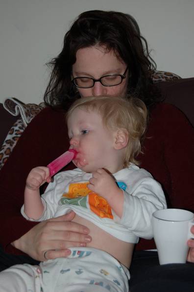 Mommy cuddles, popsicles and t.v. make everything better.