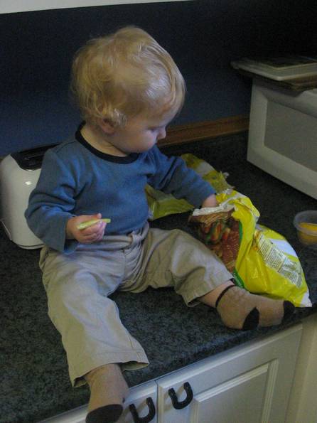 He sits on the counter and picks away at whatever we're cooking (and by "we're" I of course mean Alex because I am pants at cooking).