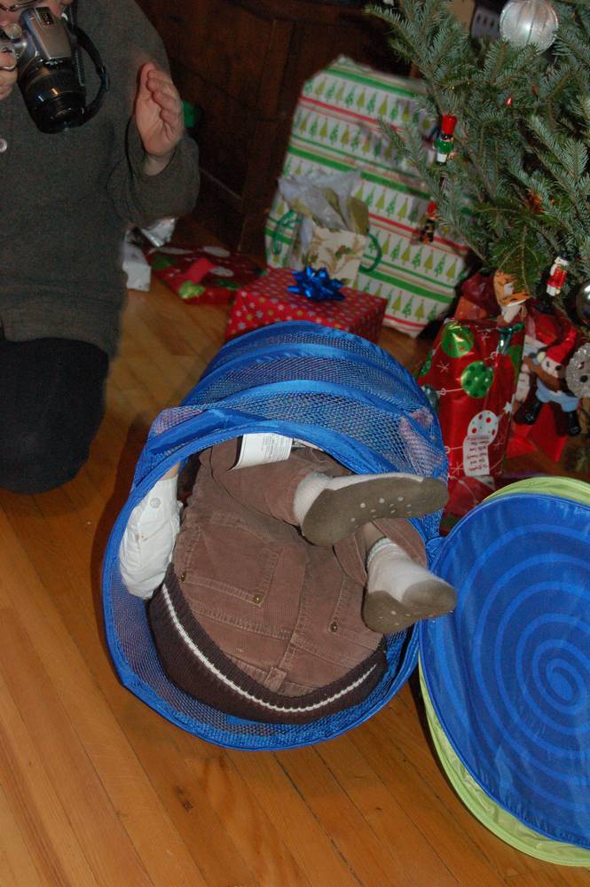 Apparently Raphie was happy to get a laundry basket all of his very own.
